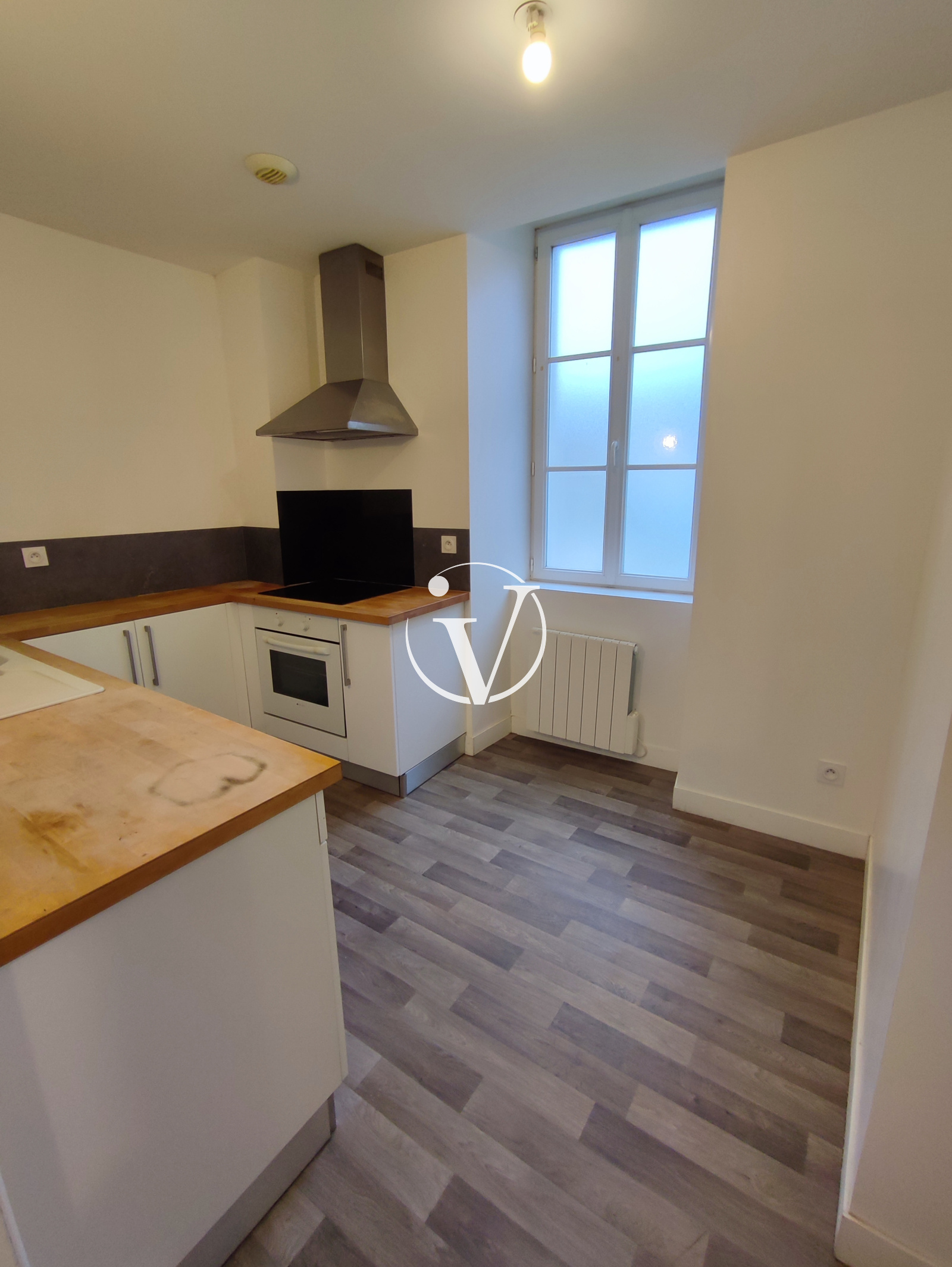 Châteaudun (28200)Dans petit immeuble, en centre ville, appartement T2 de 48 m² au 1er étage comprenant : entrée avec placard, séjour, cuisine aménagée et semi-équipée (plaque de cuisson, hotte, four), chambre, salle de bains, wc. Cave commune. Provision sur charges : TEOM, entretien et électricité des communs.