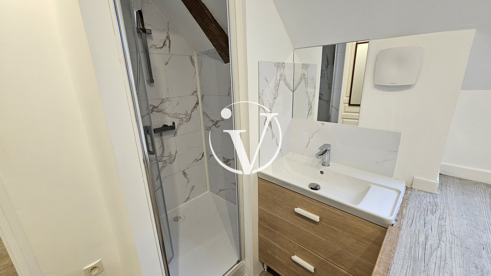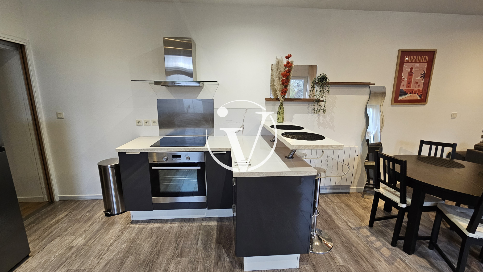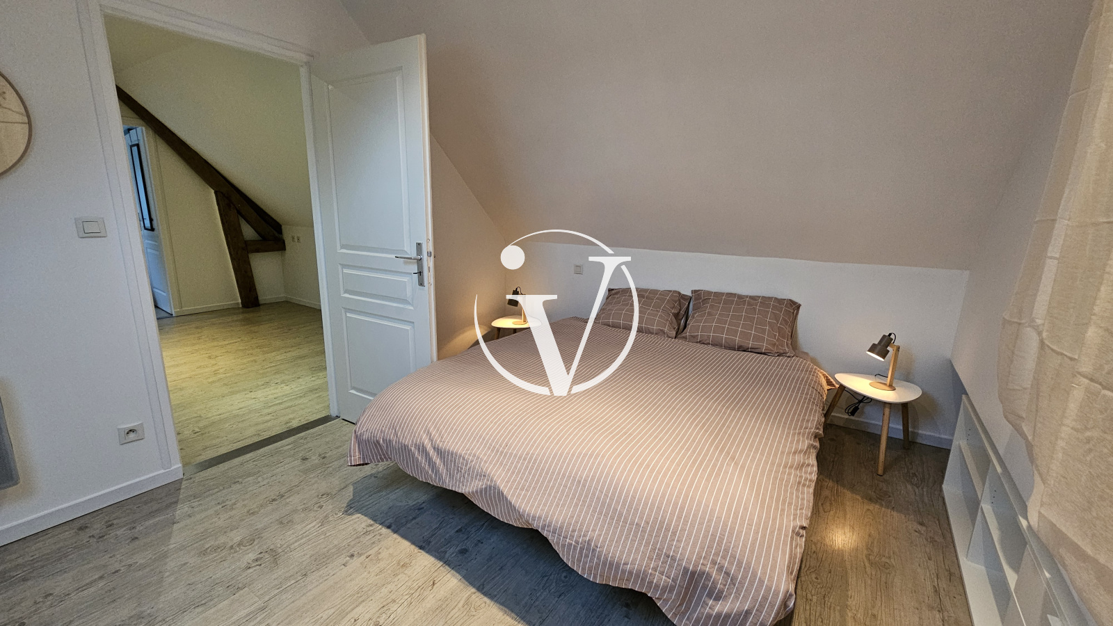Vendôme (41100)Proche centre ville, dans cour commune, bel appartement T2 MEUBLE de 56 m², en duplex, comprenant au 1er niveau : une pièce de vie avec cuisine aménagée et équipée (plaque de cuisson, hotte, four, lave-vaisselle, micro-ondes, réfrigérateur), wc avec machine à laver ; au second niveau : un palier faisant office de bureau, chambre avec rangements, salle d'eau-wc. Balcon et cave. Provision pour charges : eau froide, charges générales de copropriété.