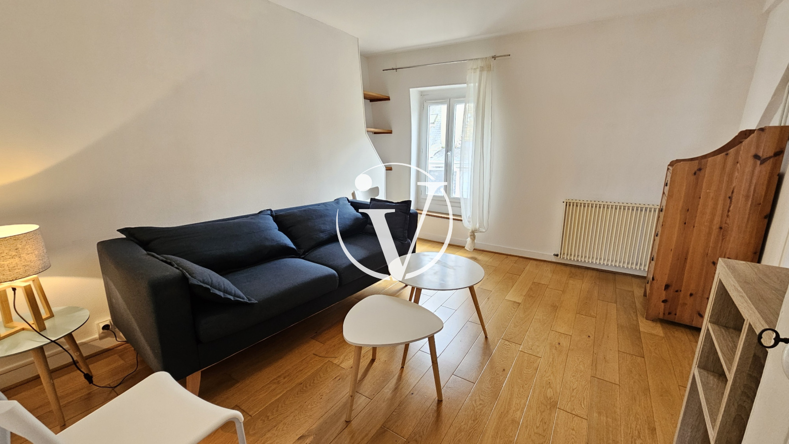 Vendôme (41100)Hyper centre-ville de Vendôme, au troisième étage sans ascenseur, T2 meublé, comprenant : entrée avec cuisine aménagée et équipée (hotte, lave-vaisselle, plaque de cuisson, micro-ondes, frigo), 1 chambre avec placards, salle de bains (machine à laver).
