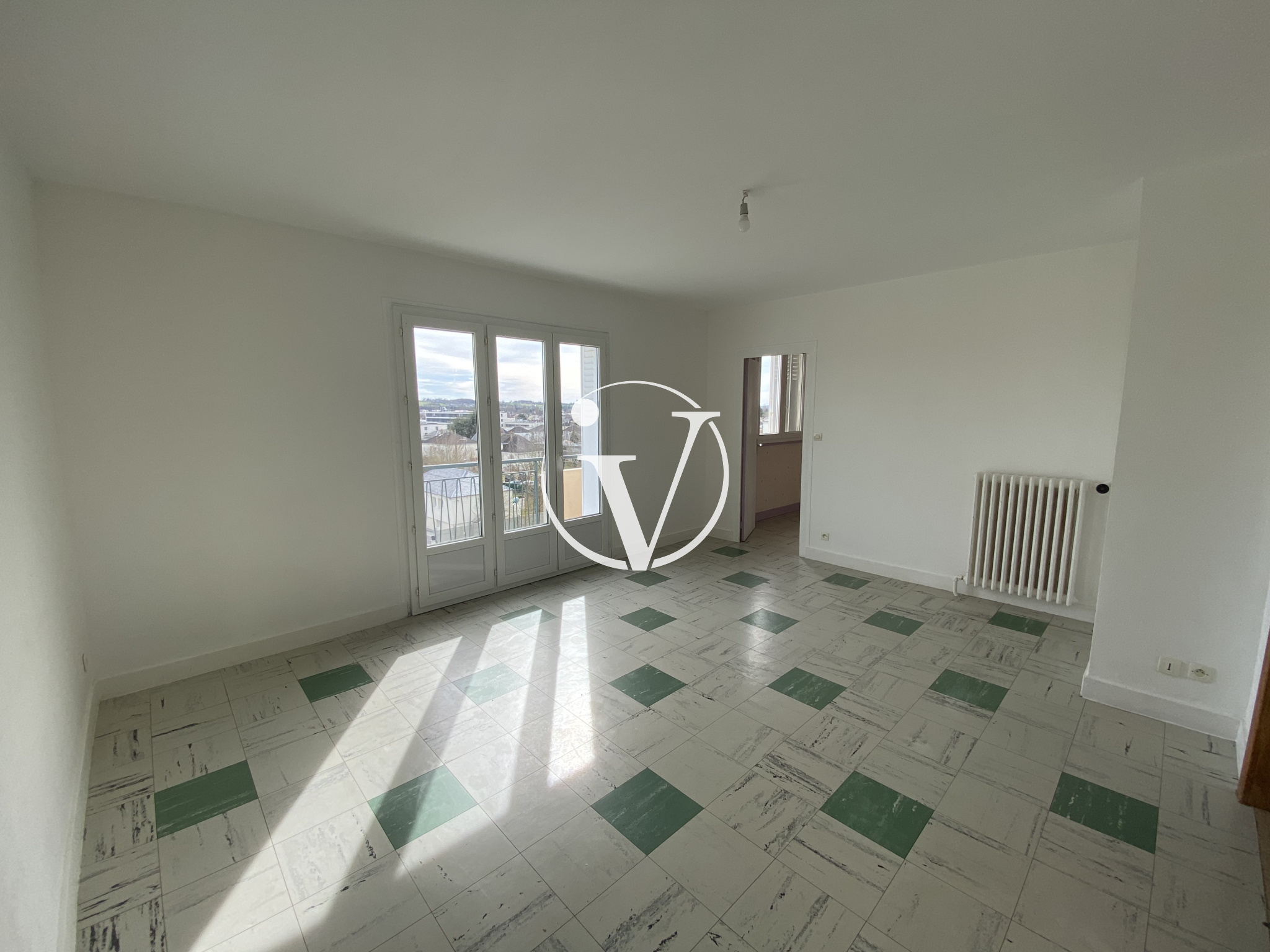 Vendôme (41100)Proches commerces et écoles, appartement T4 au 4ème étage SANS ASCENSEUR comprenant : entrée, séjour, cuisine aménagée et semi-équipée (plaque de cuisson, hotte), 3 chambres, salle d' eau, wc.
