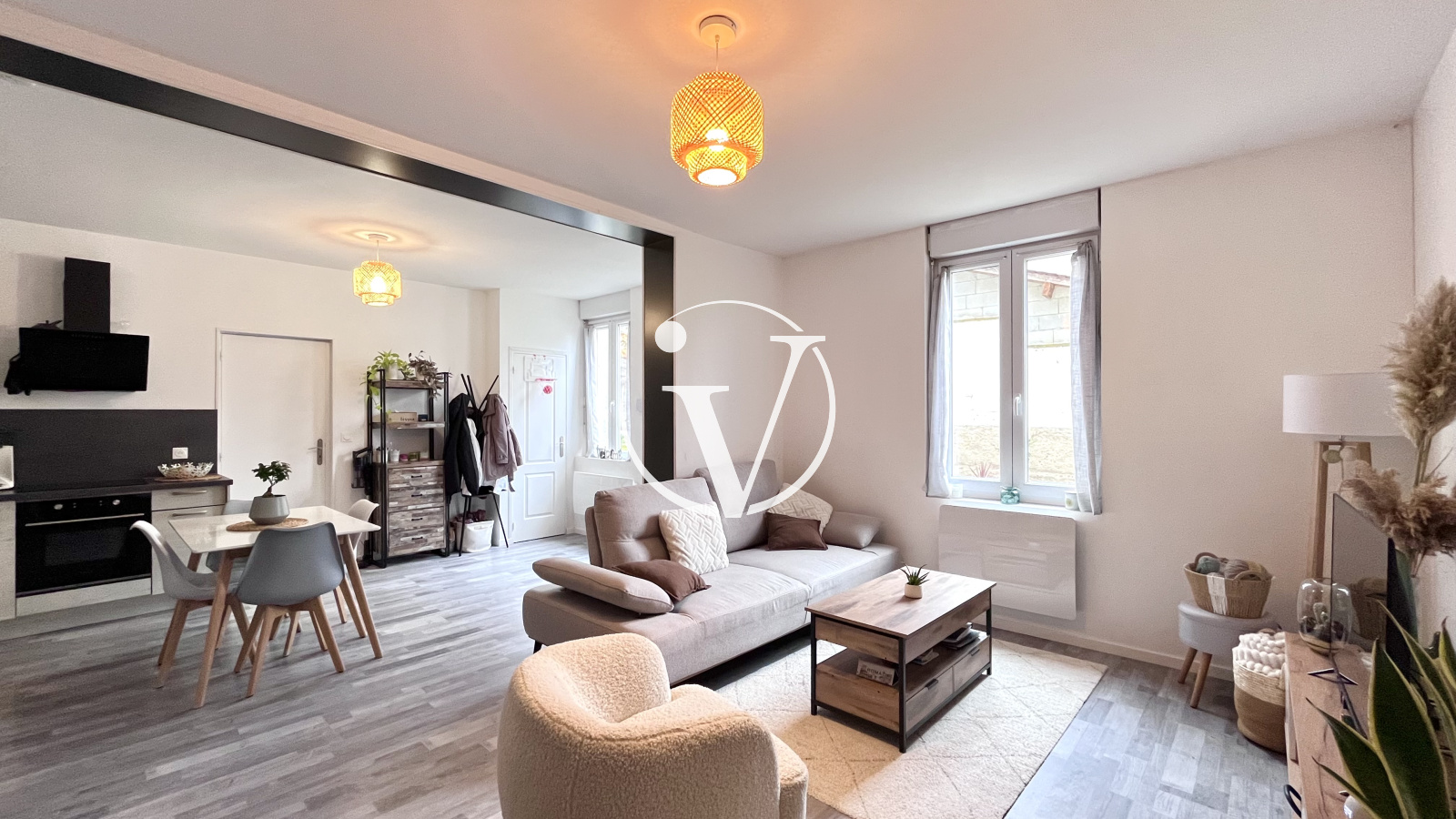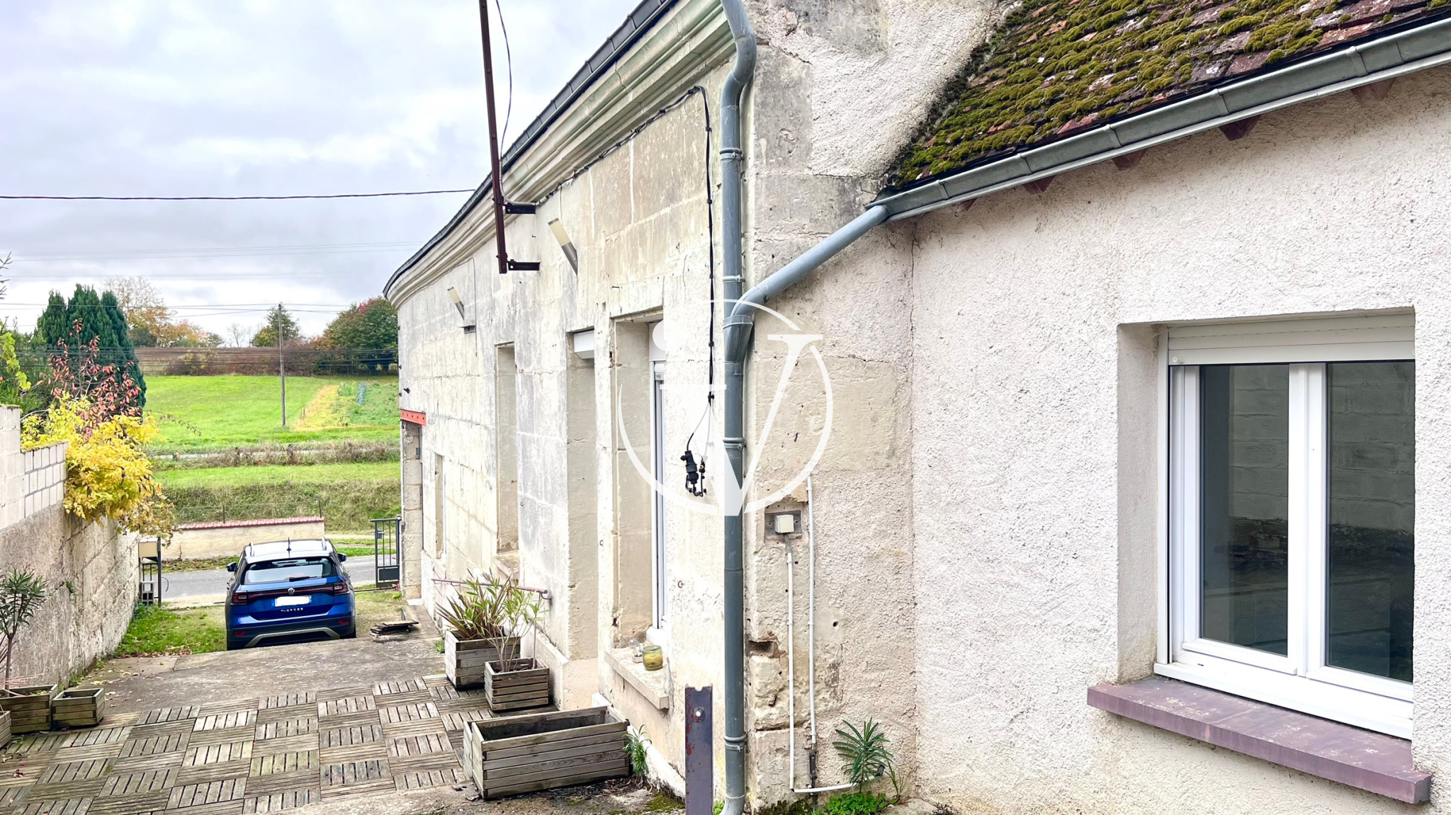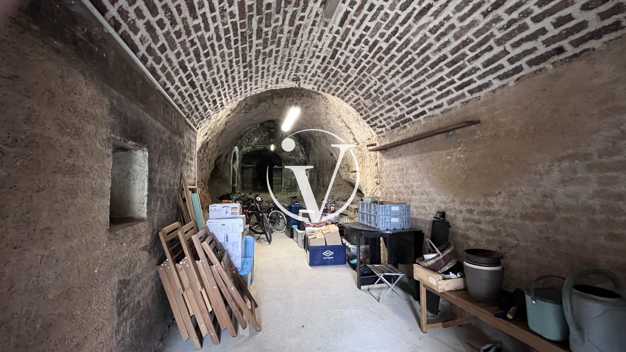 La maison dispose également d’un garage avec mezzanine, de deux caves et d’une terrasse.