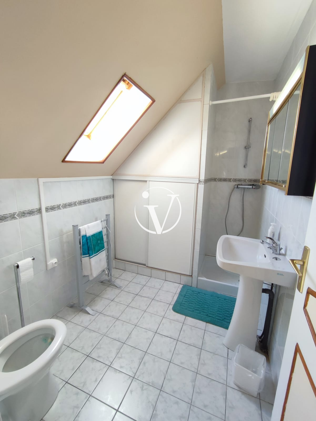 À l’étage, un palier dessert deux belles chambres et une salle d’eau avec WC.