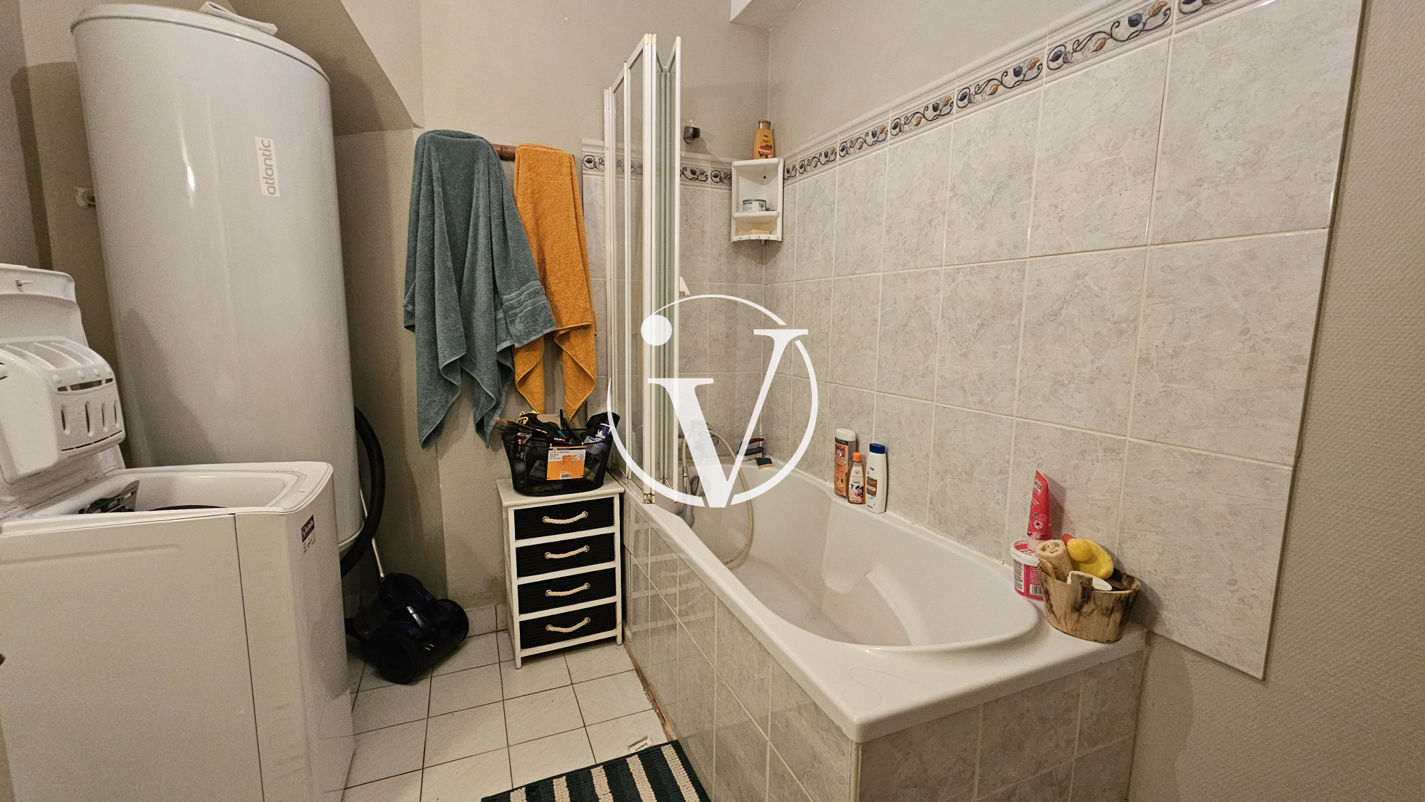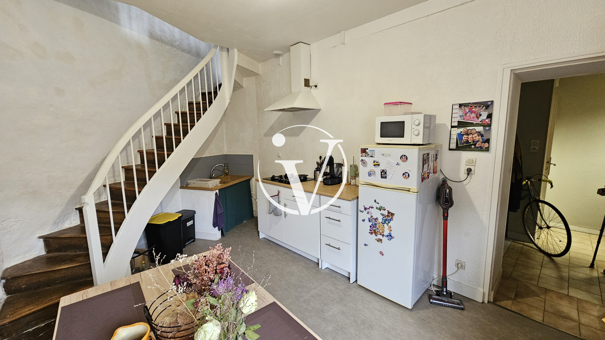 - Au rez-de-chaussée : entrée, séjour avec cuisine, salle de bains, WC,