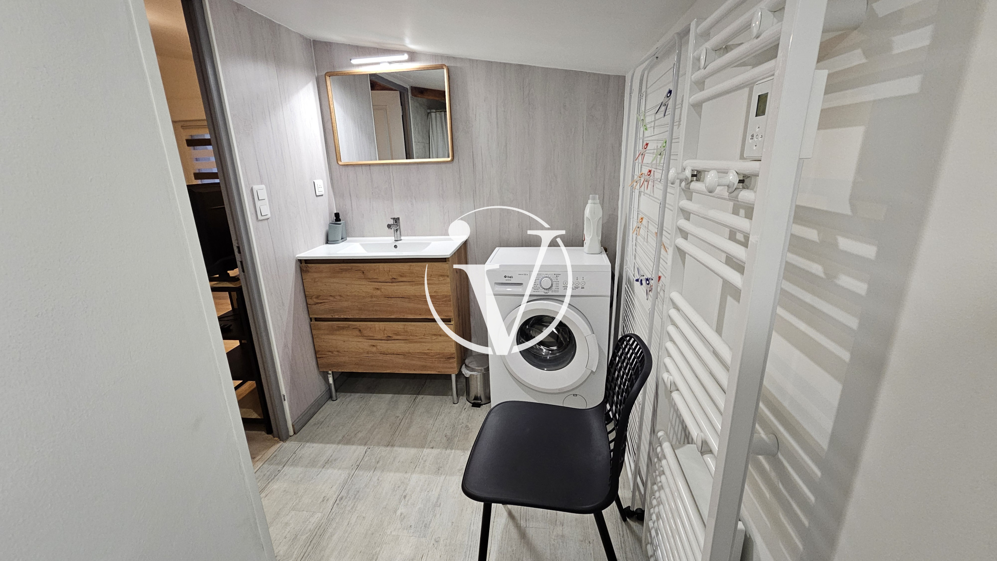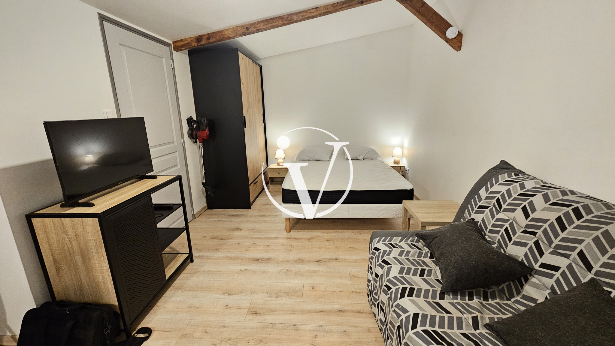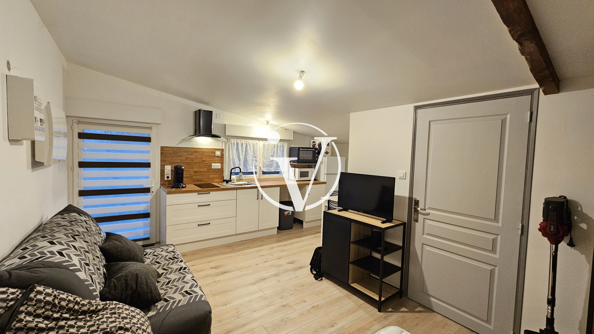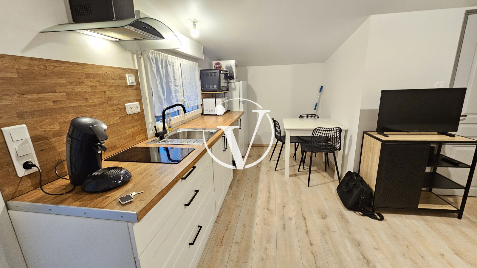 Saint-Amand-Longpré (41310)Studio entièrement meublé qui se compose d'une cuisine toute équipée (four/ micro-ondes/ frigo/ plaque de cuisson induction/ hotte) d'une partie nuit avec canapé, couchage et téléviseur, d'une salle de douche avec WC et machine à laver.