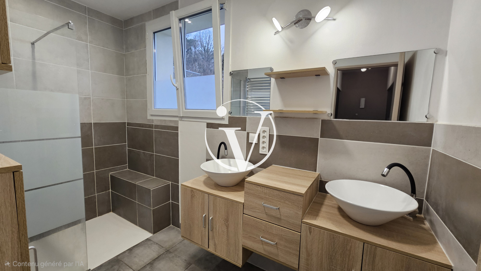 À l’étage, trois chambres dont une avec balcon, une salle d’eau et un WC.