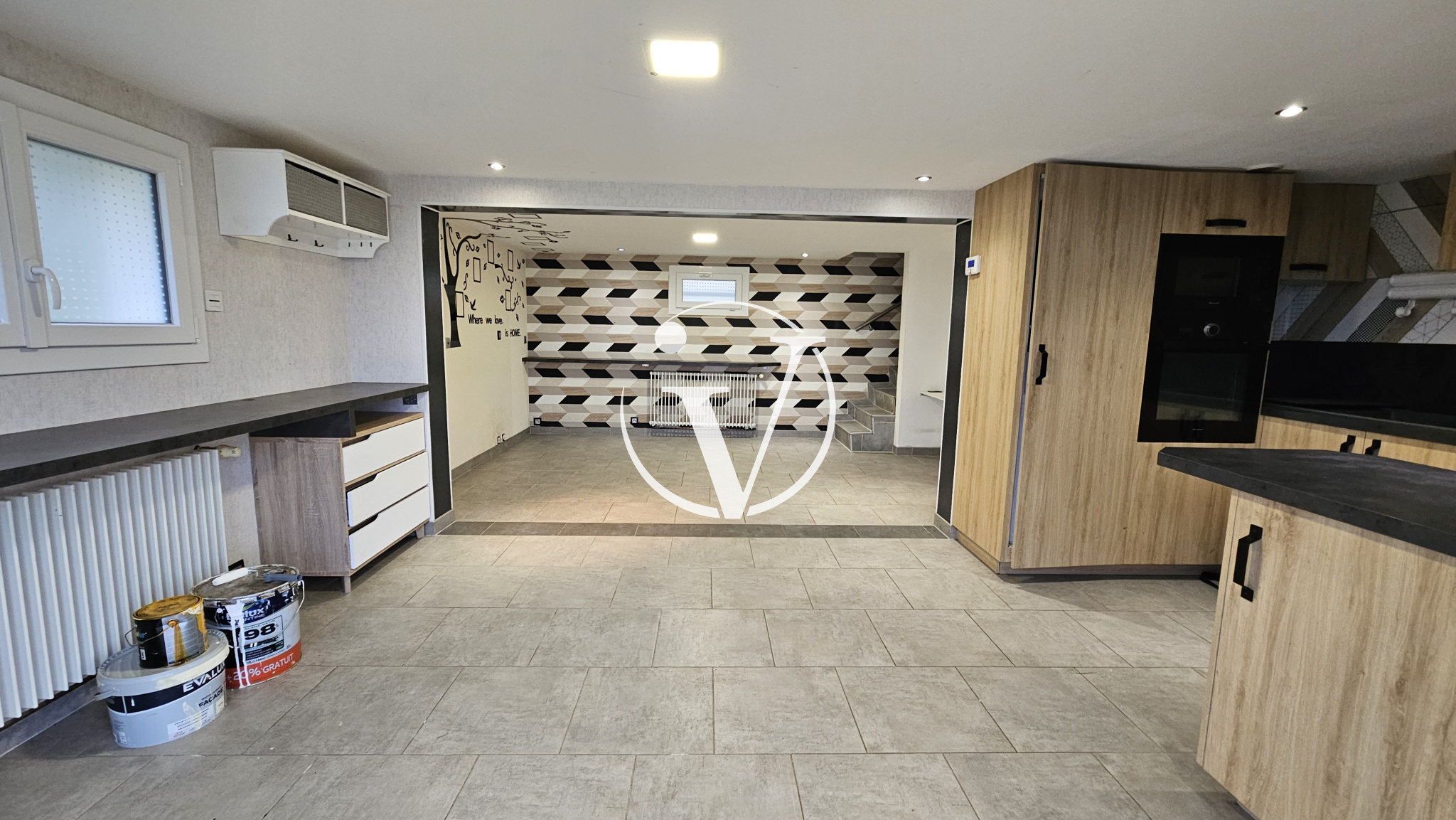 Lisle (41100)Maison comprenant, au rez-de-chaussée, un séjour avec cuisine ouverte aménagée et équipée (plaque de cuisson, four, hotte, lave-vaisselle), une buanderie et une chaufferie.