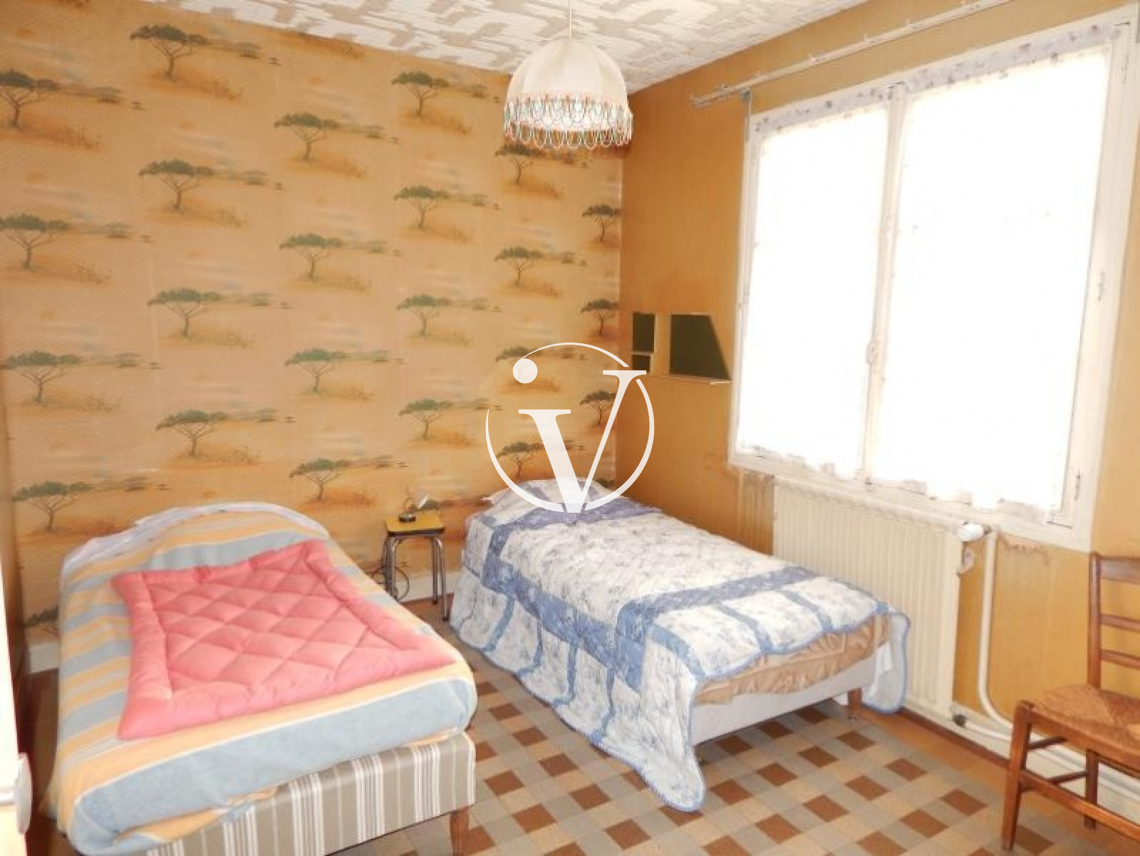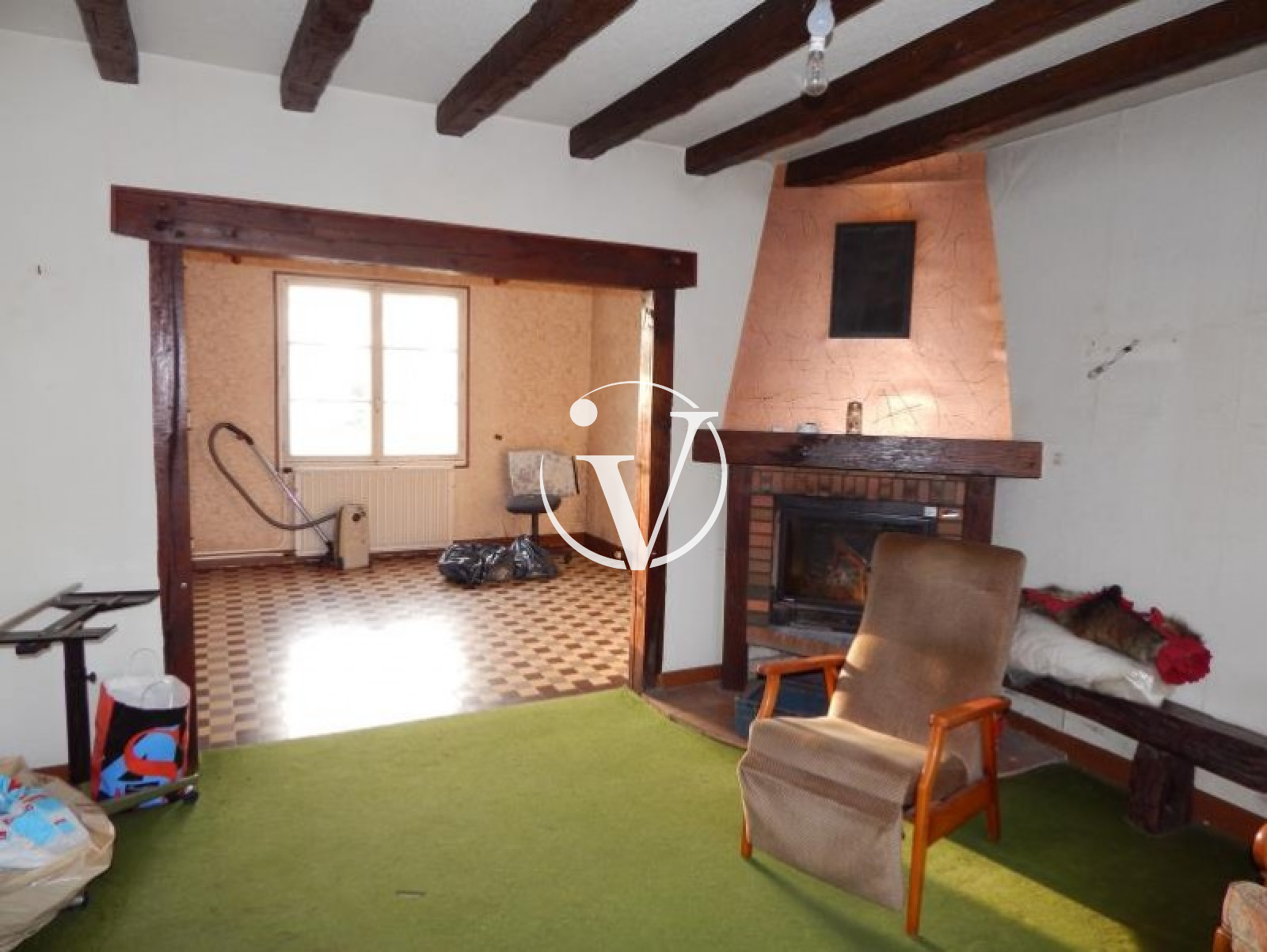 Vendôme (41100)Au nord de Vendôme (15 min du centre ville par la N10), dans village avec petits commerces et services (boulangerie, épicerie, pharmacie, docteur, kinesitherapeutes, infirmières...), maison de 98 m² à rafraichir avec : ~Au rez-de-chaussée surélevé : entrée, séjour avec cheminée, cuisine, chambre, salle d'eau - wc.~Au 1er étage : palier 2 chambres, salle d'eau-wc, grenier.~Sous-sol complet : garage, atelier, buanderie, cellier, cave, wc.~Petites dépendances.~Le jardin de 3340 m² est clos et arboré.