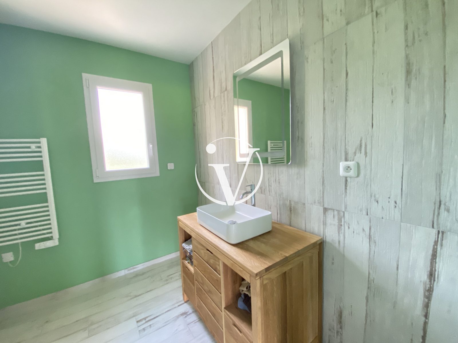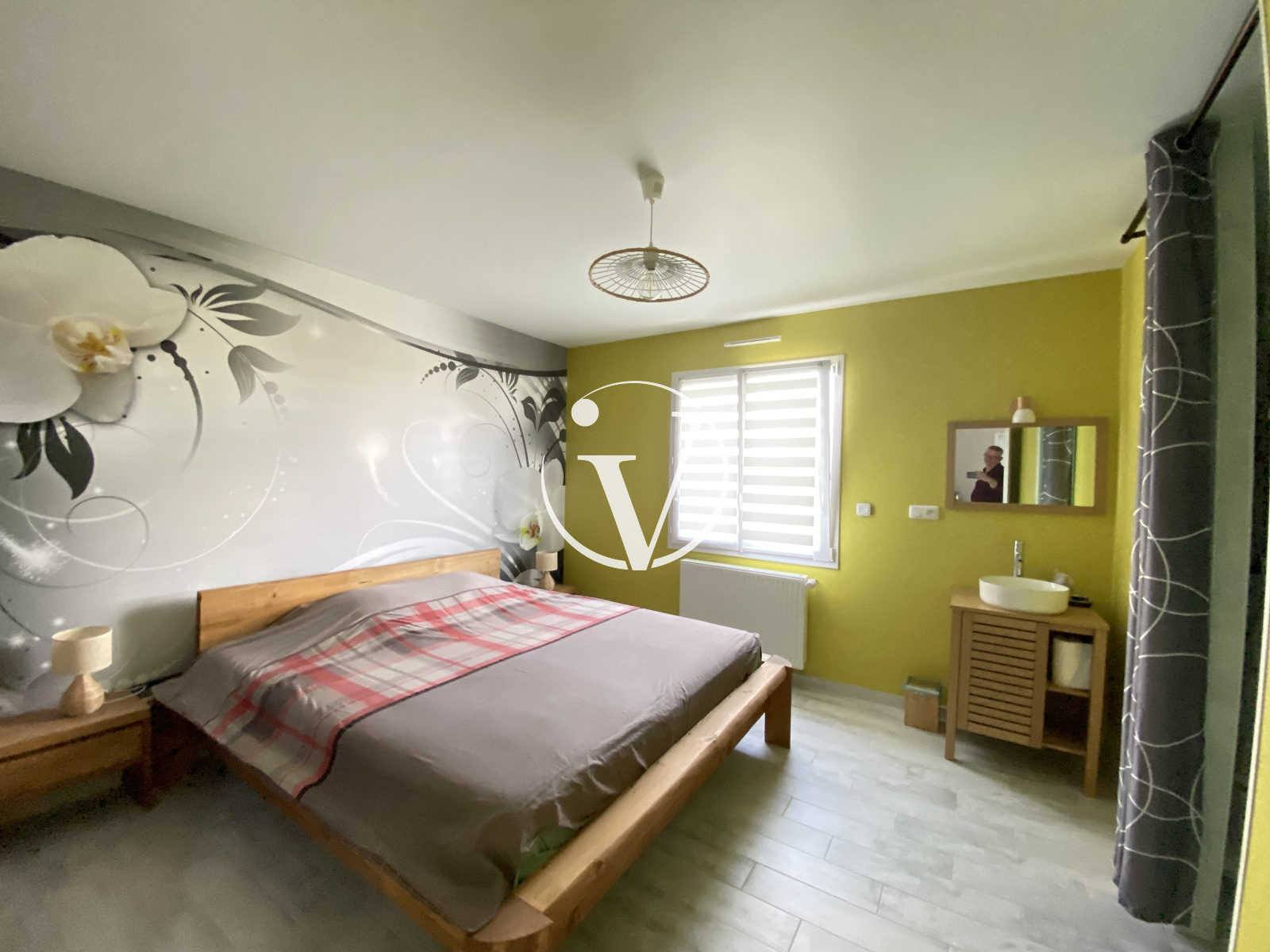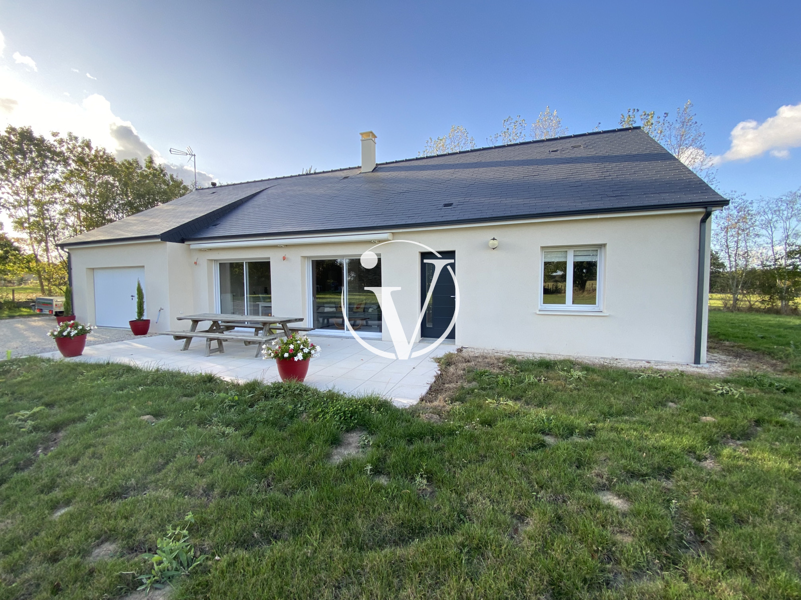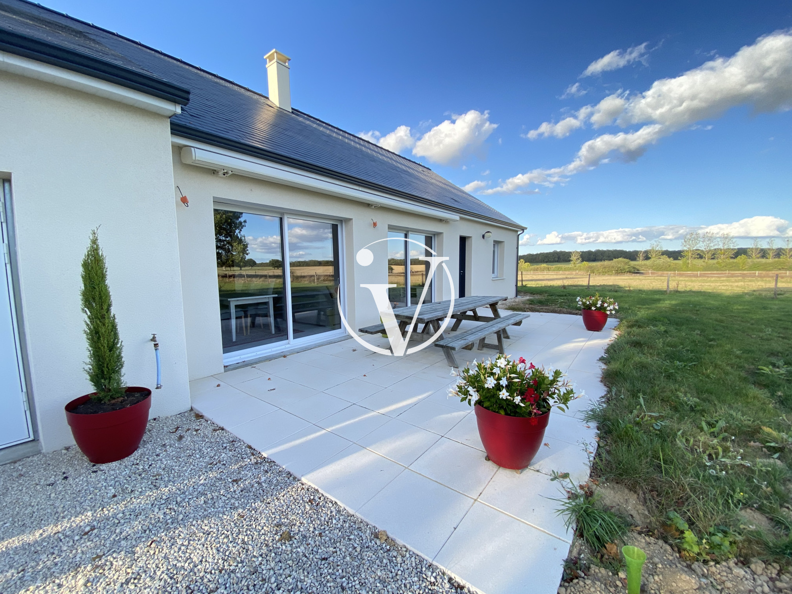 Vendôme (41100)Située à seulement quelques minutes de Vendôme et de la gare TGV, venez découvrir cette maison contemporaine composée de : grande pièce de vie d'environ 50 m² avec cuisine aménagée et équipée, 3 chambres dont 1 avec salle de douche, salle d'eau, wc, cellier et garage avec porte motorisée. Vous retrouverez le confort d'une maison récente avec des prestations de qualité : pompe à chaleur air-eau, vmc double-flux, huisseries double-vitrage avec volets roulants électriques centralisés et vous serez séduit par la vue imprenable sur la campagne que vous offrira le terrain d'environ 2800 m².