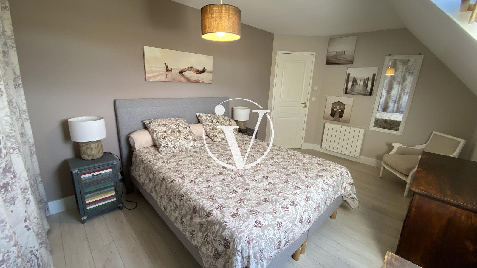 À l'étage, un palier dessert trois belles chambres, une salle d'eau moderne et des WC indépendants.