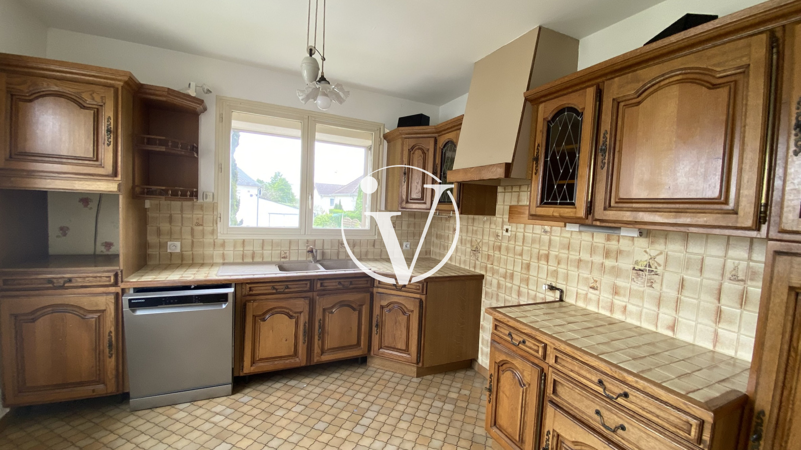 Vendôme (41100)Vendôme, dans quartier calme, maison de 80 m² sur sous-sol comprenant : entrée, séjour double avec cheminée, cuisine, 2 chambres, salle de bains, wc. Sous-sol complet avec garage, chaufferie - buanderie, salle d'eau - wc, chambre d'appoint. Terrain clos de 542 m².