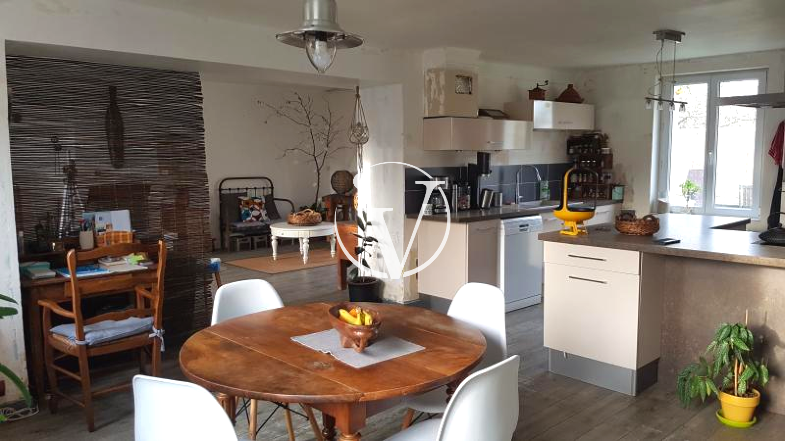 Vendôme (41100)15 km SUD DE VENDOME, dans village avec commerces et écoles, maison comprenant : entrée, cuisine dinatoire d'environ 26 m² aménagée et équipée, pièce de vie d'environ 29 m² avec cheminée s'ouvrant sur la terrasse et le jardin, bureau, wc; à l'étage : mezzanine-salle de jeux, salle d'eau avec wc, 2 chambres, salle de bains, palier, espace bureau avec placards, 3 chambres. Terrasse avec espace détente, jardin avec bassin à poisson, garage, chaufferie. Attenant à la maison 3 pièces pouvant accueillir une activité professionnelle ou un logement de type 2 soit une surface d'environ 40 m². Le tout sur un terrain de 535m². Une visite virtuelle est disponible sur notre site internet.