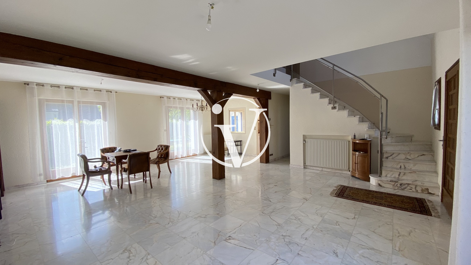 Vendôme (41100)VENDOME, 5 mn de la gare TGV, proche commerces et écoles, maison d'architecte d'environ 210 m² comprenant au rez-de-chaussée : entrée, pièce de vie s’ouvrant sur le jardin, cuisine aménagée et équipée avec accès à la terrasse, bureau, 3 chambres, 2 salles d'eau, à l’étage : palier, 3 chambres avec placards, salle de bains, wc, grenier pouvant aménagée en 2 pièces.. Garage. Jardin clos et arboré de 692 m².