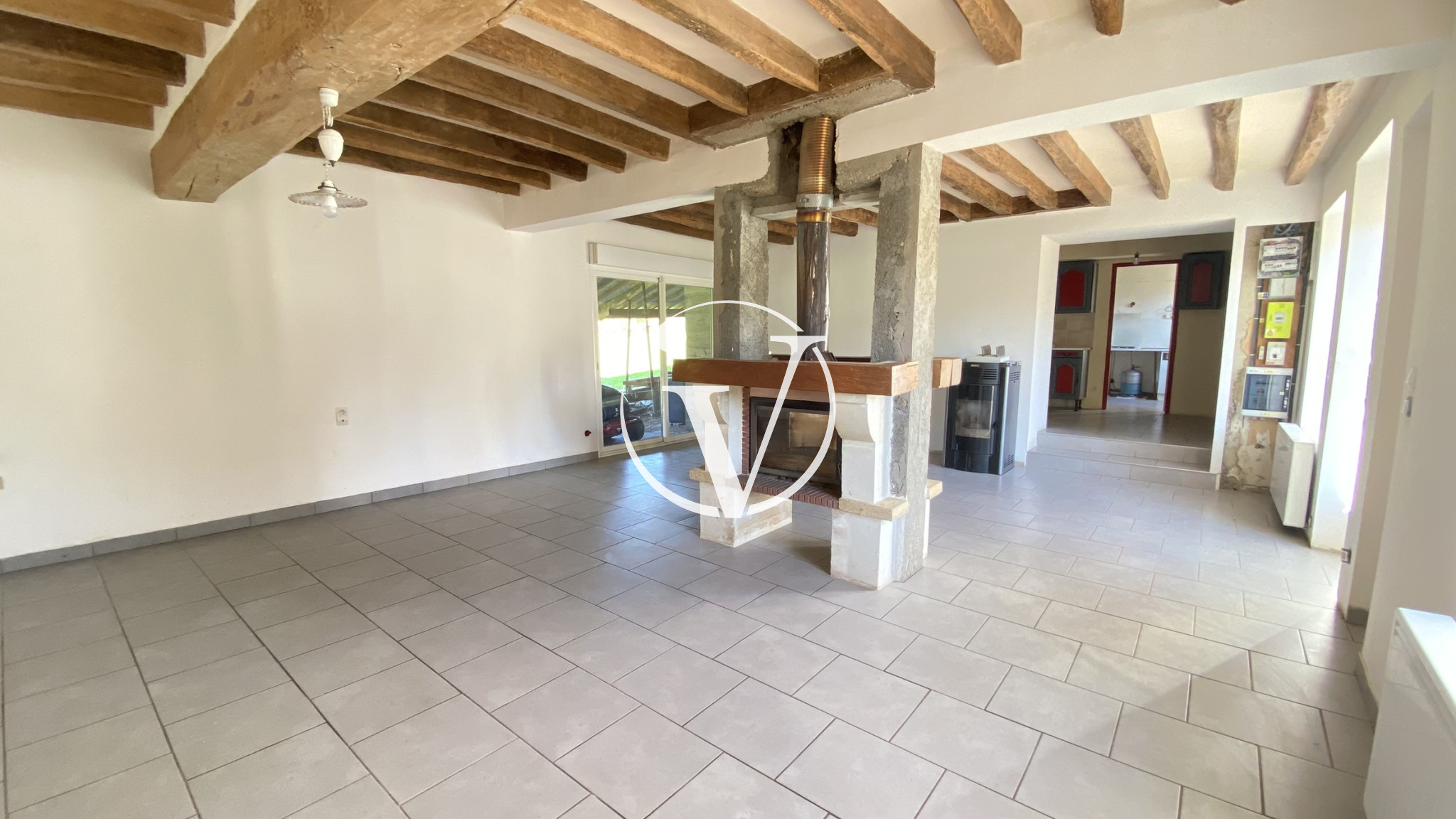 De plain-pied, elle se compose d’une entrée, d’un vaste séjour lumineux de 47 m² équipé d’un poêle à bois et d’un poêle à granulés, d’une cuisine, d’une arrière-cuisine, d’une cave, d’une chambre, d’une salle d’eau et d’un WC.