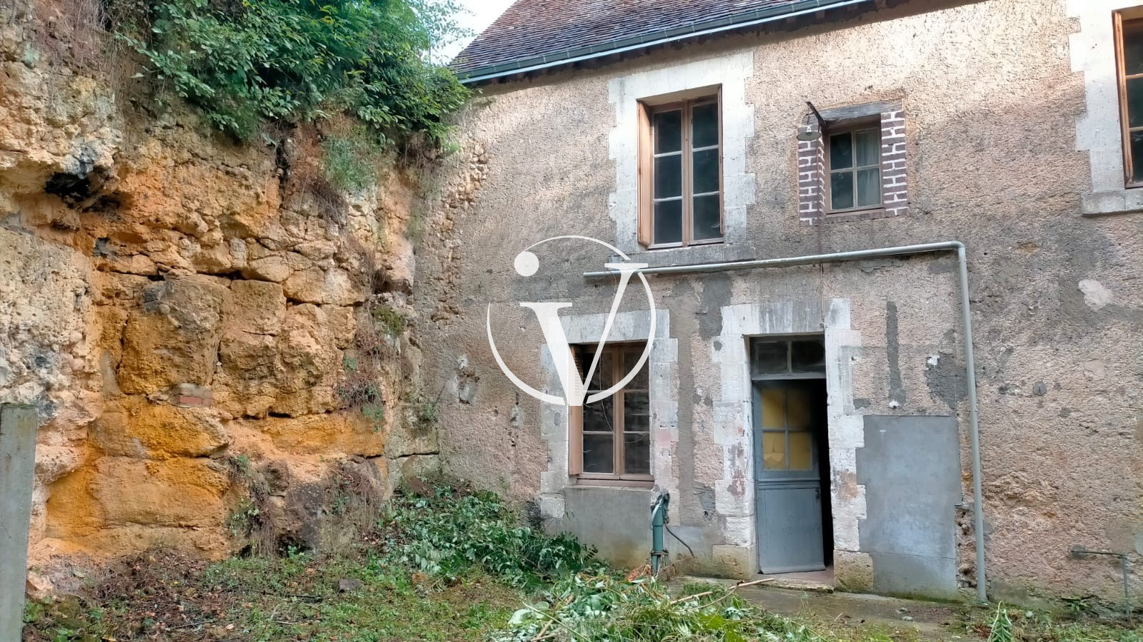 Mazangé (41100)Ensemble à finir de rénover comprenant une maison d'env. 170 m² sur deux niveaux avec un grenier d'environ 100 m² aménageable ainsi qu'un terrain en bord de Loir (500 m²) avec structure en bois (garages) et des caves dans le roc. Le tout sur env. 850 m² de terrains. (terrain en coteau en +)